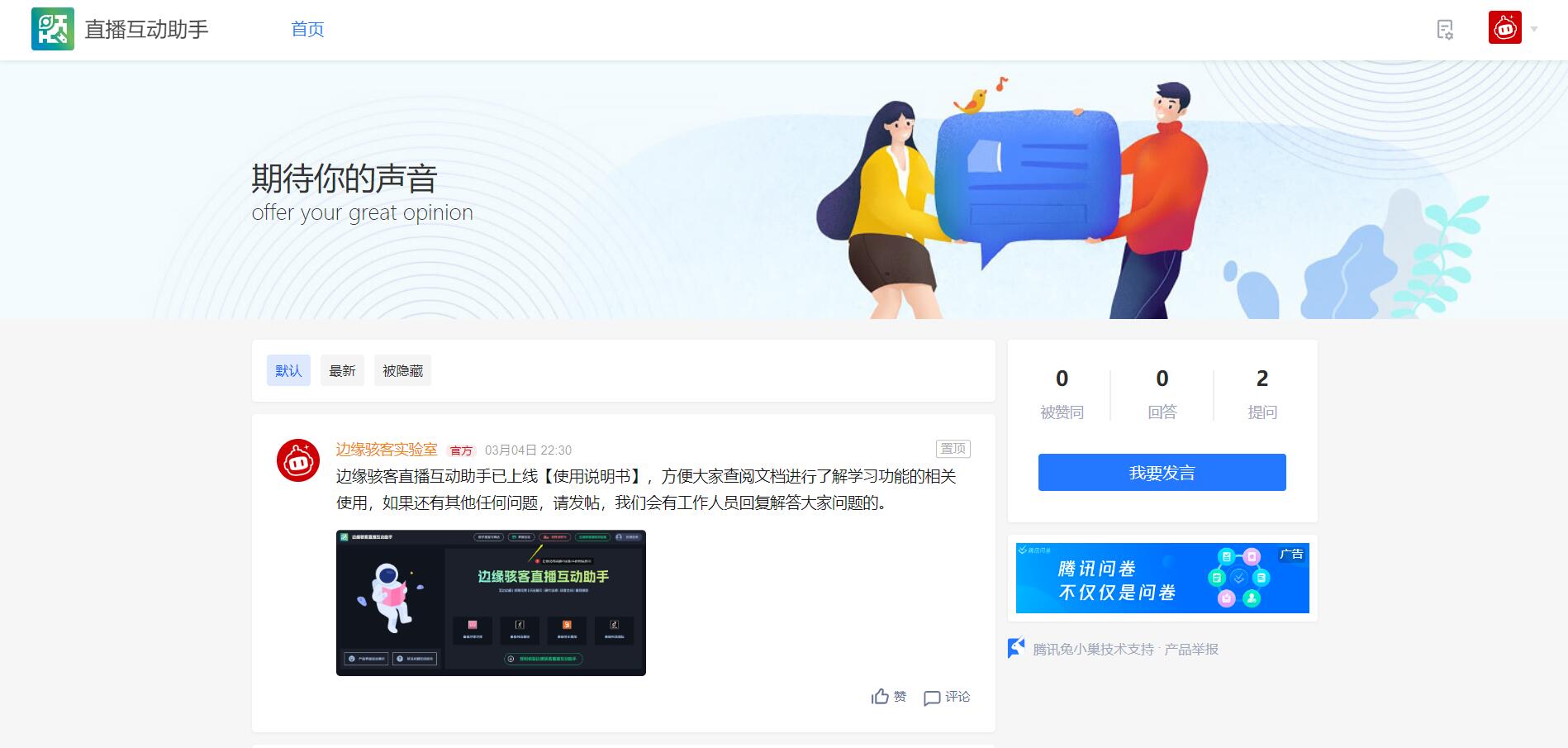 兔小巢反馈空间
